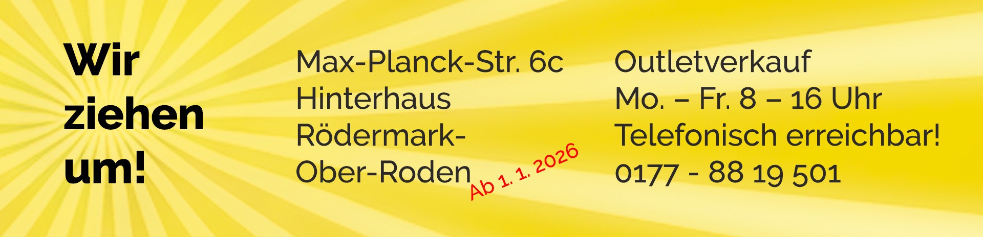 Öffnungszeiten Lagerverkauf